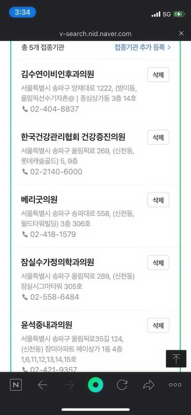 단 병원 5곳을 지정한 뒤에 알림이 뜨게 되면 당일 예약신청이 됩니다.