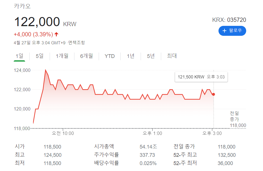 카카오 상장일정